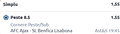 Avem etapă de Champions League în această săptămână, iar pentru ziua de astăzi, eu am reușit să extrag 3 pronosticuri în care am o încredere extrem de ridicată. Prefațăm mai întâi disputa dintre Ajax - Benfica!