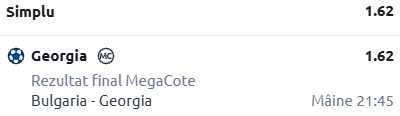Avem și astăzi destul de multe meciuri interesante. Prima oprire o facem National Stadium Vasil Levski, acolo unde avem programată confruntarea dintre Bulgaria - Georgia. Pontul meu este în cotă 1.62!