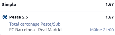 Nu aveam cum să nu prefațăm și “El Clasico” din finala Cupei Spaniei, acolo unde le avem evident protagoniste pe Barcelona vs Real Madrid. Evităm pariurile clasice și mizăm pe un bet mai special, cu o cotă de 1.67!