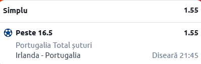 Portughezii au evident cel mai bun atac din grupă, cu 11 goluri marcate, iar defensiva a cedat 4 goluri. La disputa de astăzi, eu am să merg pe linia de peste 16,5 șuturi trimise de aceasta.