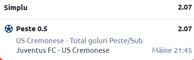 În plus, Juve va intra în joc fără 4 jucători destul de importanți. Cum am spus, Cremonese are un atac destul de solid. Chiar o văd capabilă să marcheze astăzi.