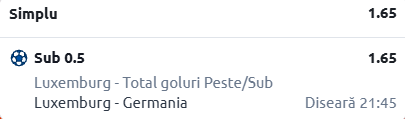 Pronostic: Sub 0,5 goluri Luxemburg - Cota 1.65