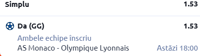 Facem o vizită și pe Stade Louis II, acolo unde Monaco urmează să primească vizita celor de la Lyon. În rândurile de mai jos găsești informații esențiale despre cele două grupări, cât și un pont în cotă 1.53!