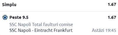 Calculele mele sunt foarte simple. Napoli înregistrează cu ușurință această medie aprope meci de meci, iar Frankfurt nu este genul de echipă care să se baricadeze în apărare.