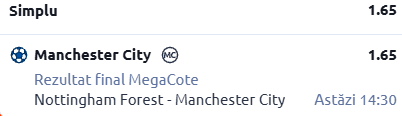 Facem mai întâi o vizită pe City Ground, acolo unde Nothingham Forest urmează să primească vizita celor de la Manchester City în etapa de boxing day. În rândurile de mai jos îți sunt prezentate informații despre cele două, cât și un pont în cotă în 1.65!