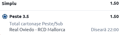 Ultima recomandare de astăzi vine de pe Estadio Nuevo Carlos Tartiere, acolo unde Real Oviedo urmează să primească vizita celor de la Mallorca, într-un duel ce contează pentru etapa cu numărul 15 din La Liga!