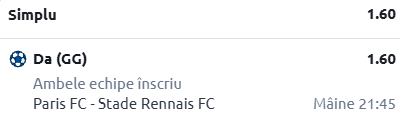 În această seară, începând cu ora 21:45, Paris FC - Rennes urmează să se dueleze în deschiderea etapei cu numărul 12 din Ligue 1. În rândurile de mai jos îți sunt prezentate informații despre cele două formații, cât și un pont în cotă 1.60!
