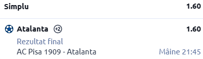 Nu mă complic absolut deloc, așa că, la partida din această seară, eu am ales să merg direct pe victoria celor de la Atalanta.