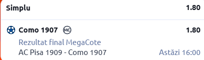 Nu mă complic absolut deloc, așa că, la partida din această seară, eu am ales să merg direct pe victoria celor de la Como.