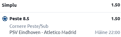 Facem o vizită și pe Philips Stadion, din Eindhoven, acolo unde PSV urmează să primească vizita celor de la Atletico Madrid. În rândurile de mai jos găsești informații despre cele două formații, cât și un pont în cotă 1.50!