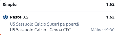 Este încă devreme, dar Sassuolo are nevoie de puncte pentru aș asigura prezența în Serie A și în sezonul următor, iar Genoa pare o victimă perfectă pentru a putea dobândi încă 3 puncte.