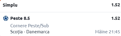 Am ales să nu mă complic absolut deloc, așa că, la confruntarea din această seară, eu am ales să merg pe linia de peste 8,5 cornere produse. Mi se pare pronosticul perfect pentru acest joc.