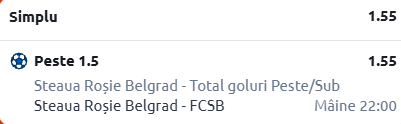 Pont: Peste 1,5 goluri Steaua Roșie Belgrad - Cota 1.55
