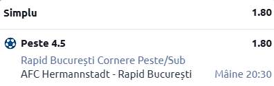 Pont: Peste 4,5 cornere Rapid București - Cota 1,80