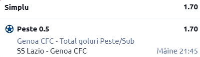 Lazio este o echipă foarte inconstantă, iar în 4 din ultimele 6 dispute, aceasta a permis minim un gol. Contra celor de la Como a cedat chiar în 3 rânduri. Nu înțeleg deloc cota aceea de 1,70 pusă pe minim un gol Genoa.