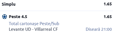 Revenind la pronostic, avem în față două echipe care cu obiective diferite. Levante se luptă pentru evitarea retrogradării, iar Villarreal încearcă să se mențină pe un loc de Champions League.