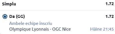 Facem o vizită și în primul eșalon de fotbal francez, acolo unde Lyon urmează să primească vizita celor de la Nice. În rândurile de mai jos găsești informații esențiale despre cele două grupări, cât și un pont în cotă 1.72!
