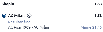 Nu mă complic absolut deloc, așa că, la partida din această seară, eu am ales să merg direct pe victoria celor de la Milan.