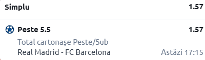 Pronostic: Peste 5,5 cartonașe - Cota 1.57
