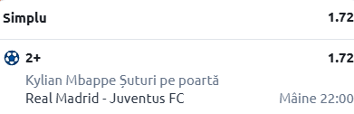 Nu am să o lungesc foarte mult, deoarece nu este cazul, toți știind calitățile acestui jucător. Da, ați ghicit, ne bazăm pe evoluția francezului Kylian Mbappe, și anume pe minim două șuturi trimise pe poartă de acesta.